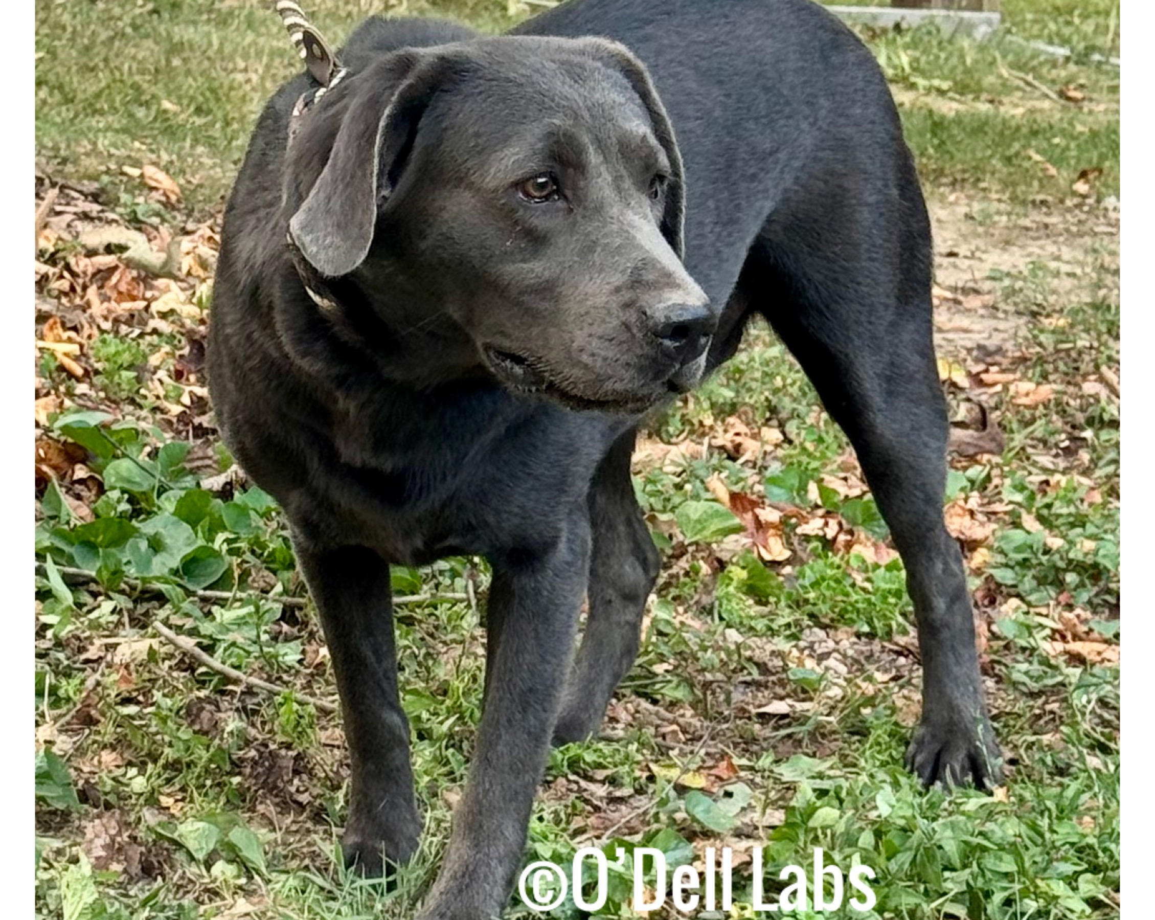 RETIRED:O'Dell's Kimber Lu C (call name Lucee--born 9/20), is from our first Cash and Benelli litter and she is everything we hoped for!!! She has OFA good hips and normal elbows (pre-lim), normal patellas, shoulders, basic cardiac, and full dentition. She is clear by parentage through Embark, but is a nonaffected carrier of Stargardt disease through Pawprints.Her coat type is eeBBDd. She was paired with Elijah for black and charcoal pups, and for her 2nd litter she was paired with Daniel for all black and yellow English pups. Lucee recently competed in her first conformation show, making the judges smile at her sweet and friendly disposition. She also earned her championship title!!! Lucy has now been retired and lives with her guardian family in St. Louis. We kept back two of her last pups for the future.